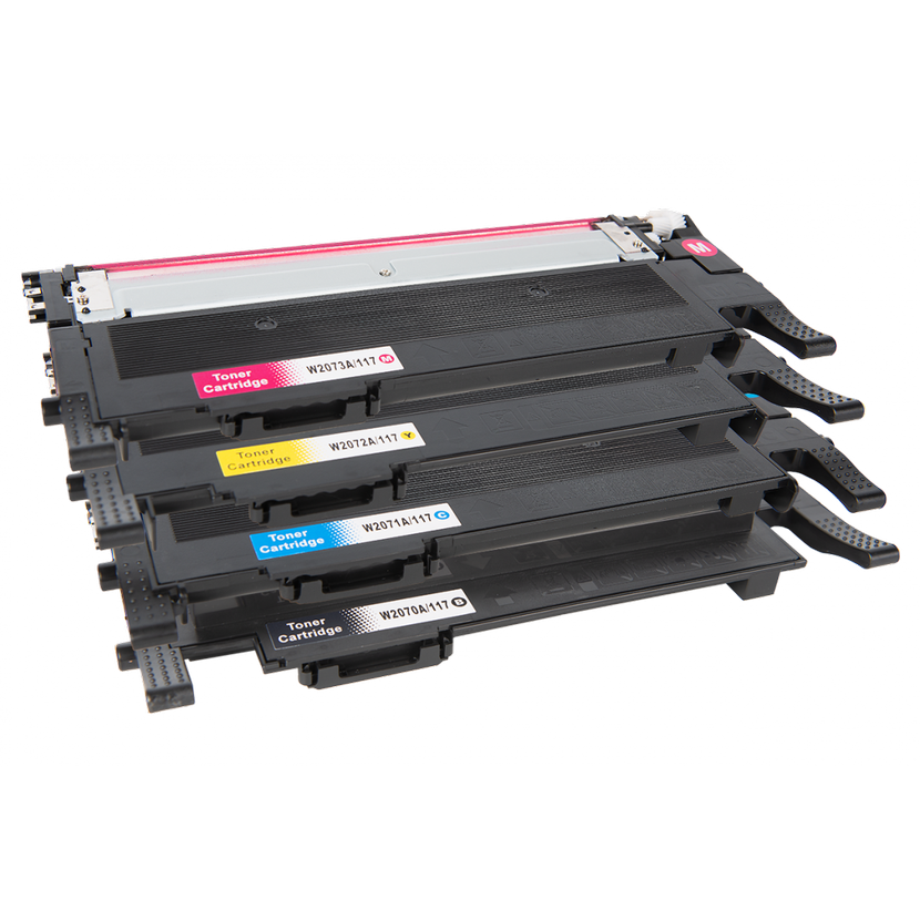 Sada 4 ks kompatibilních laserových tonerů HP W2070A, W2071A, W2072A a W2073A řady 117A. Cenově výhodná sada obsahuje černý, cyan, yellow a magenta toner pro tiskárny HP Color Laser 150a, 150nw, Color Laser MFP 178nw a 179fnw. Ideální řešení pro levnější barevný laserový tisk s garantovanou kompatibilitou a funkčností.